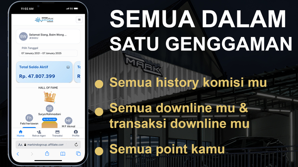Markindo Group perusahaan yang sudah terpercaya sejak 2014 mempersembahkan Mark Affiliate. Kami memberi kesempatan siapa saja menghasilkan komisi nyata setiap bulan dari produk kami.